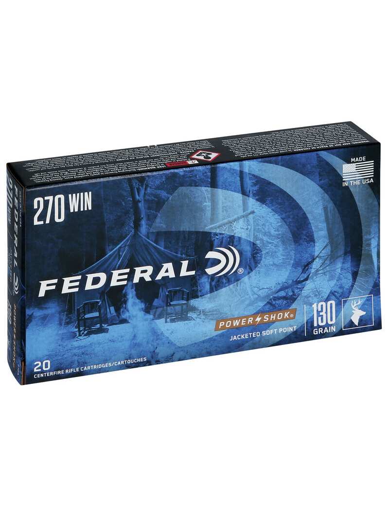 Bala FEDERAL 270 Win Jacketed Soft Point 130gr (Punta de plomo encamisada). Las balas de caza tradicionales con núcleo de plomo en las cargas de rifle Federal® Power•Shok® brindan precisión sólida y potencia a un precio asequible. Cuentan con latón, imprimaciones y pólvora Federal® confiables y son adecuados para una amplia variedad de caza mediana y grande.